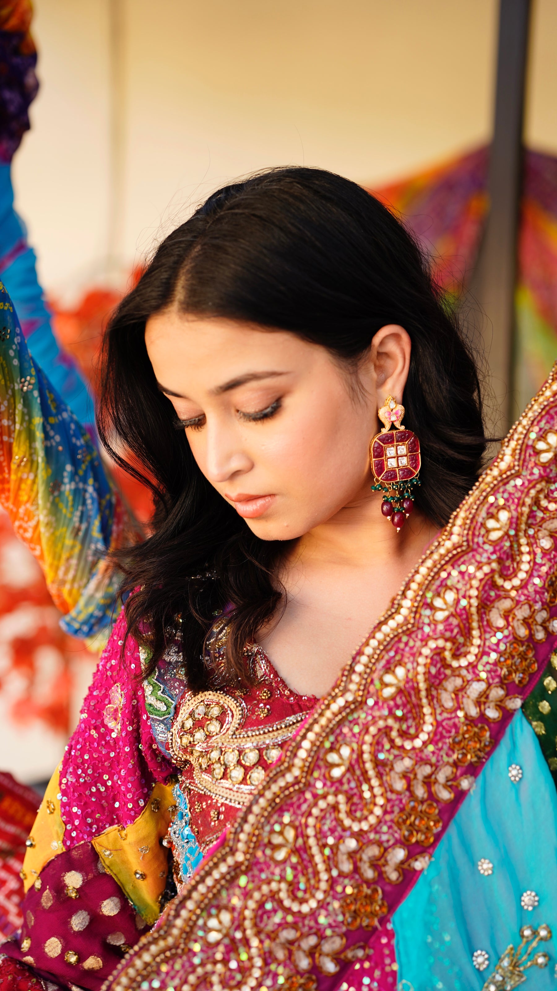 A true masterpiece of handcrafted heritage. Zubeida is crafted using traditional Banjara & Kutchi patchwork, mirror work, zari detailing, and hand-embroidered motifs — layered panel by panel by our karigar women. Each patch carries its own story, making every piece one-of-one and impossible to recreate identically.