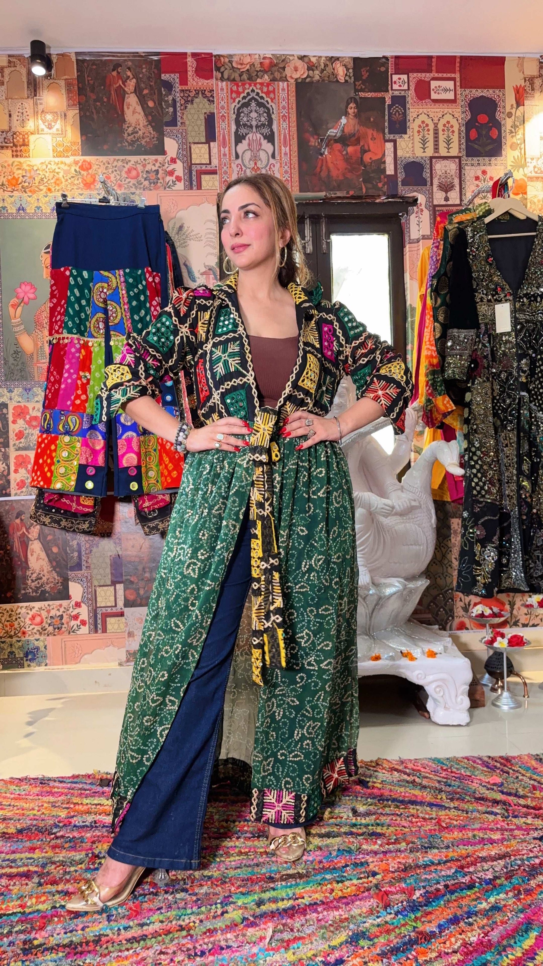 Phulkari ; Bandhani Flared Shrug – Multicolor Variants