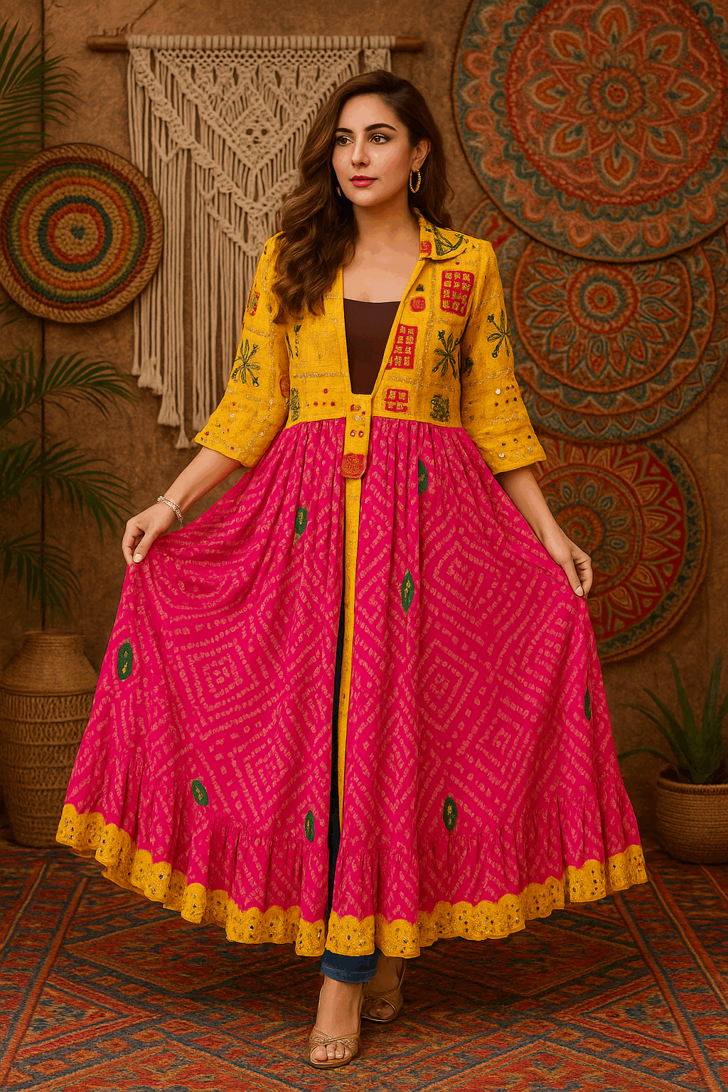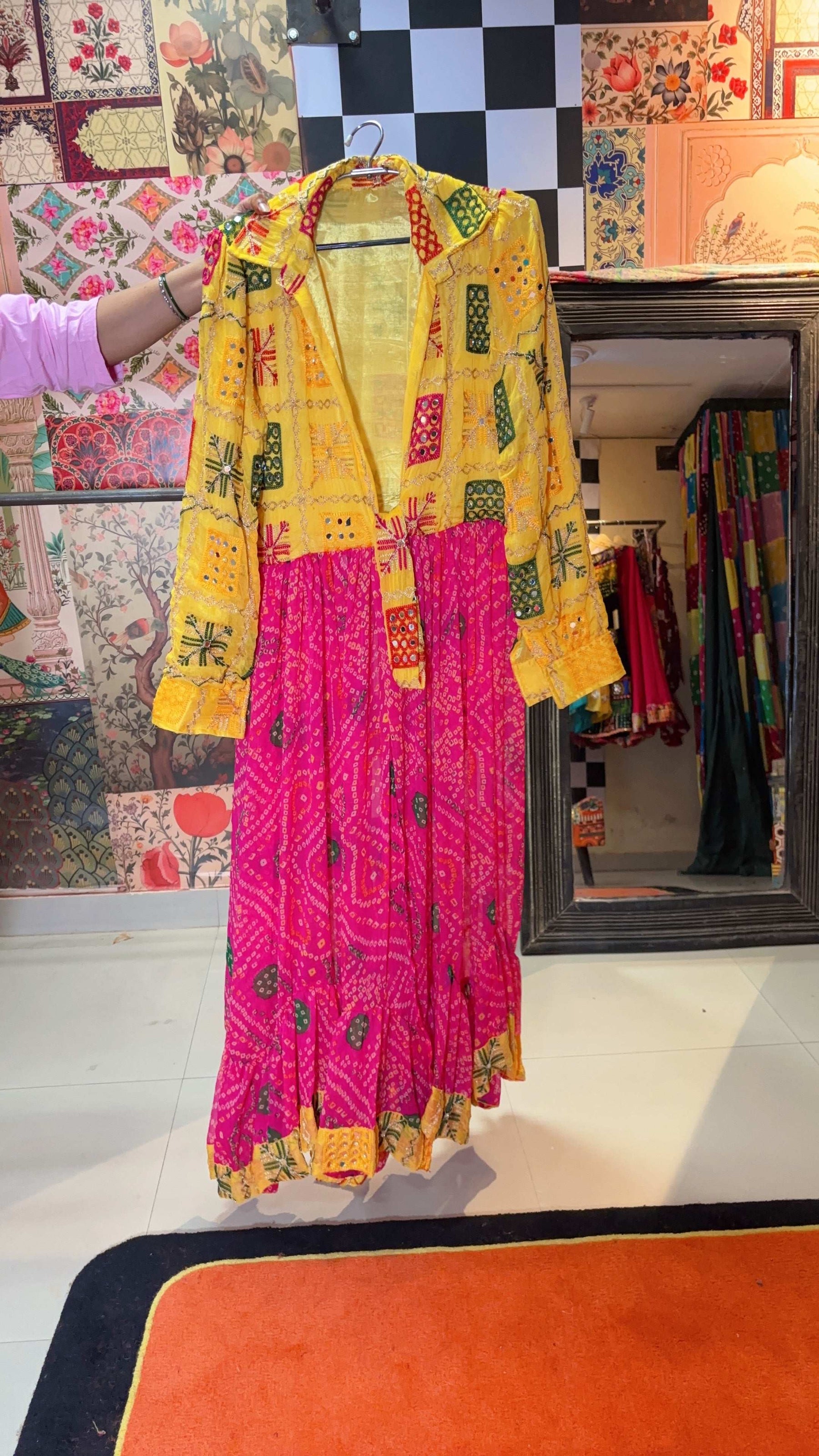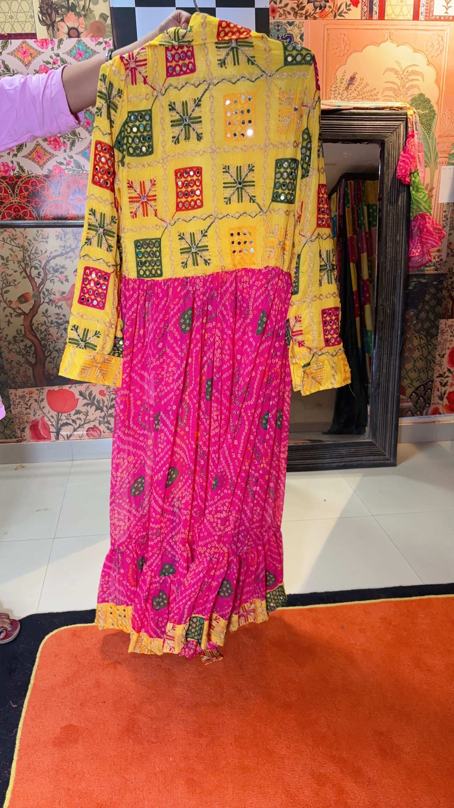 Sunshine  – With bright yellow Phulkari yoke and pink Bandhani flare