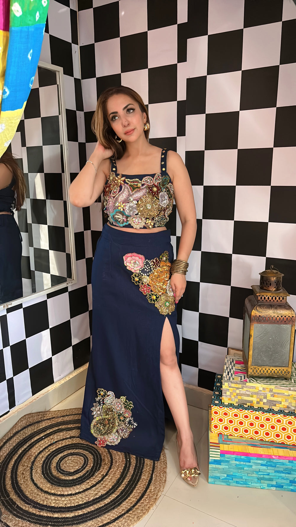 Embellished midi skirt & bralette set - banjaratrail
