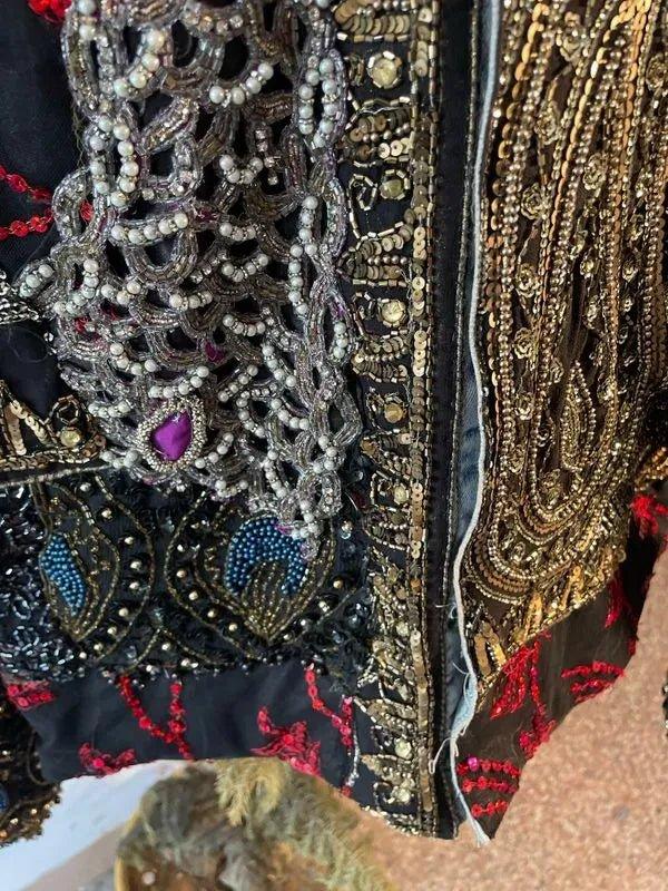 Handcrafted with intricate embroidery, beadwork, and jewel-toned detailing, this jacket carries dense artisanal work arranged in a refined, structured silhouette. Every element is placed with intention, creating a piece that feels collected, not produced.