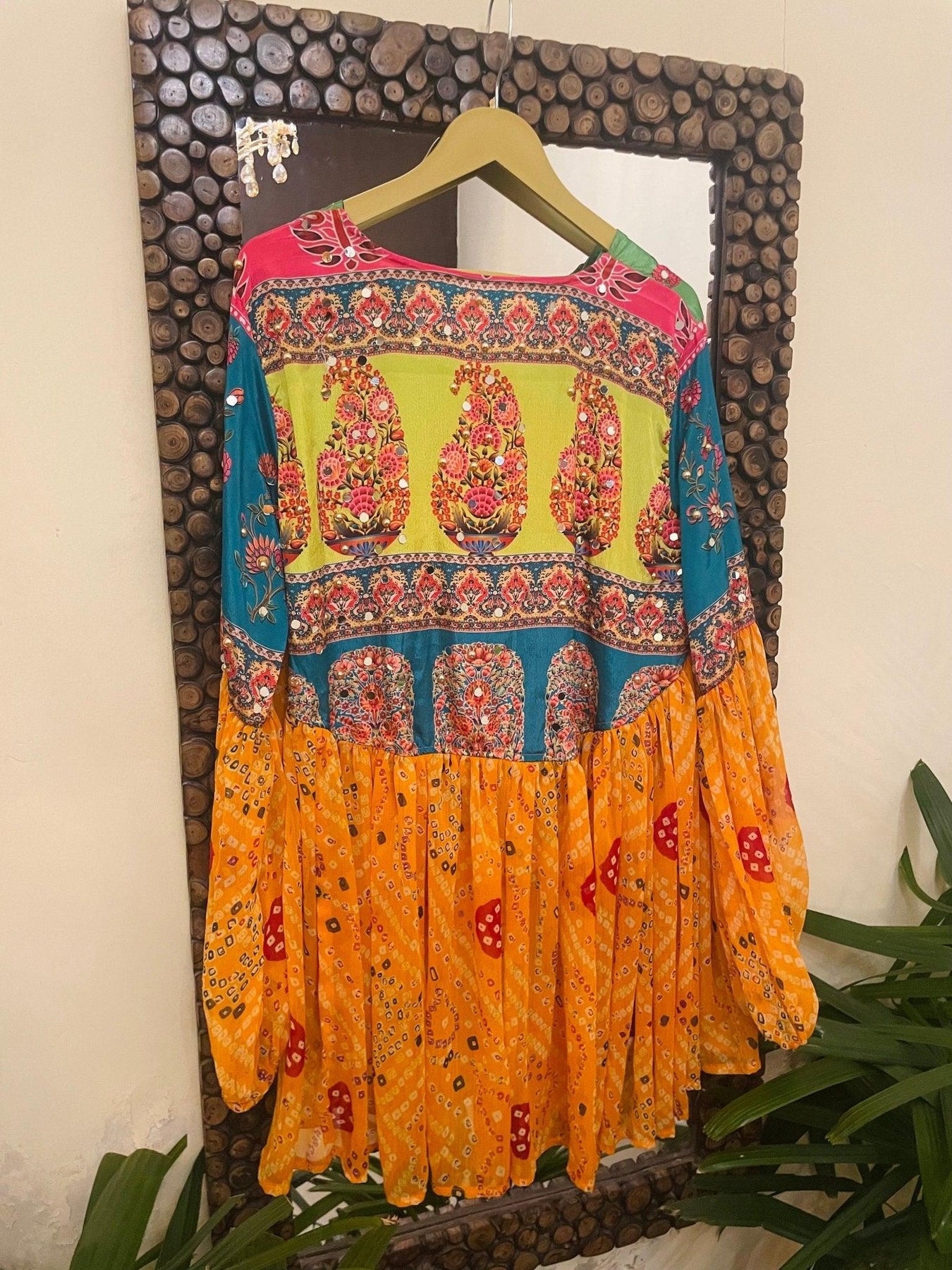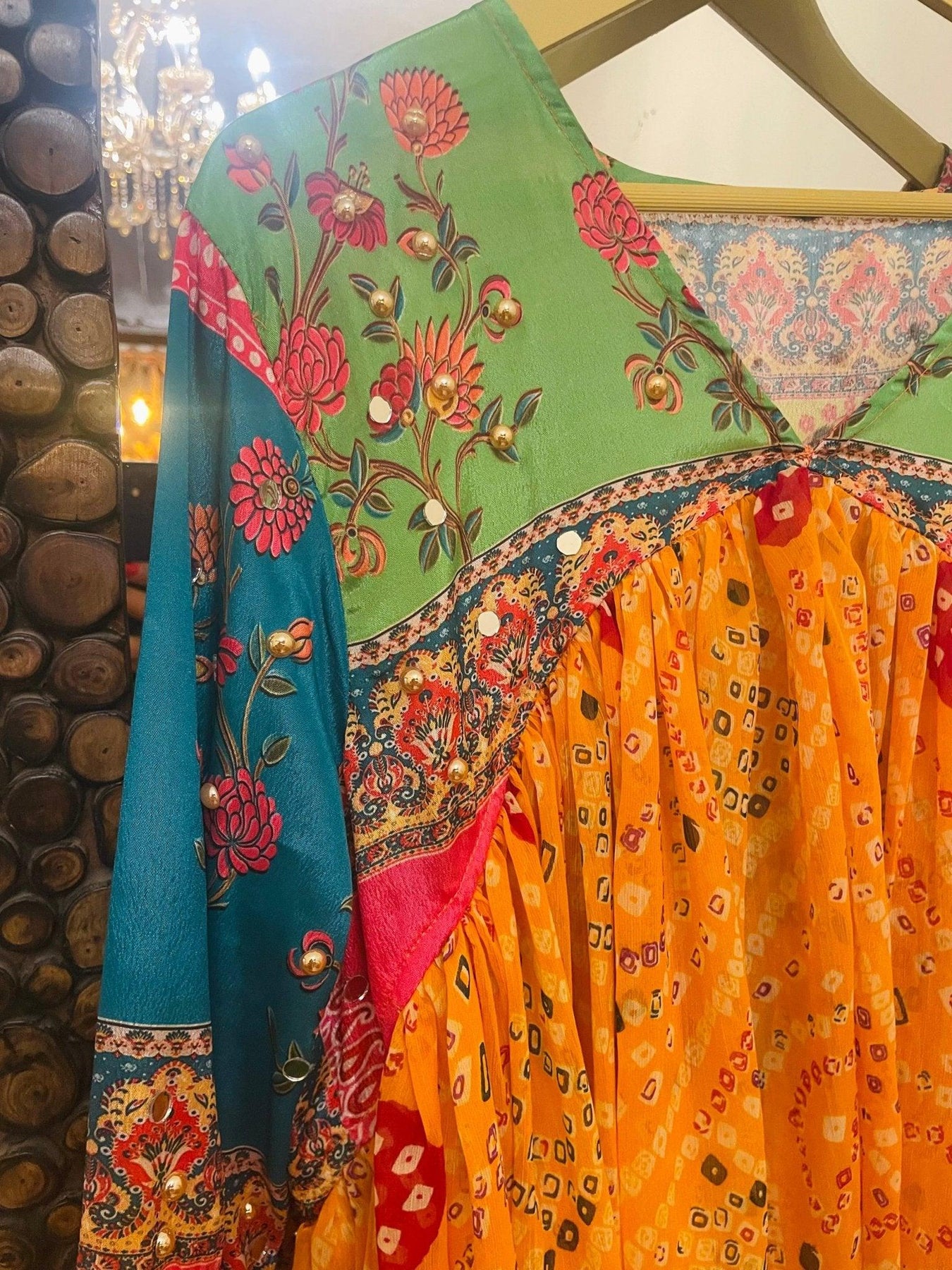 Since our garments feature hand embroidery, mirror work, patchwork, and traditional textiles, artisan variations in print alignment, patch placement, mirror detailing, or shade tone are natural and part of the handcrafted process. These variations make each piece unique and are not considered defects.
